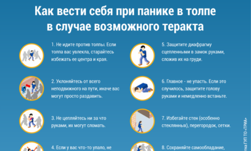 Основные правила безопасности в общественных местах в случае угрозы теракта либо при большом скопления людей напоминают тюменцам. Как вести себя при панике в толпе Не идите против толпы. Если толпа …