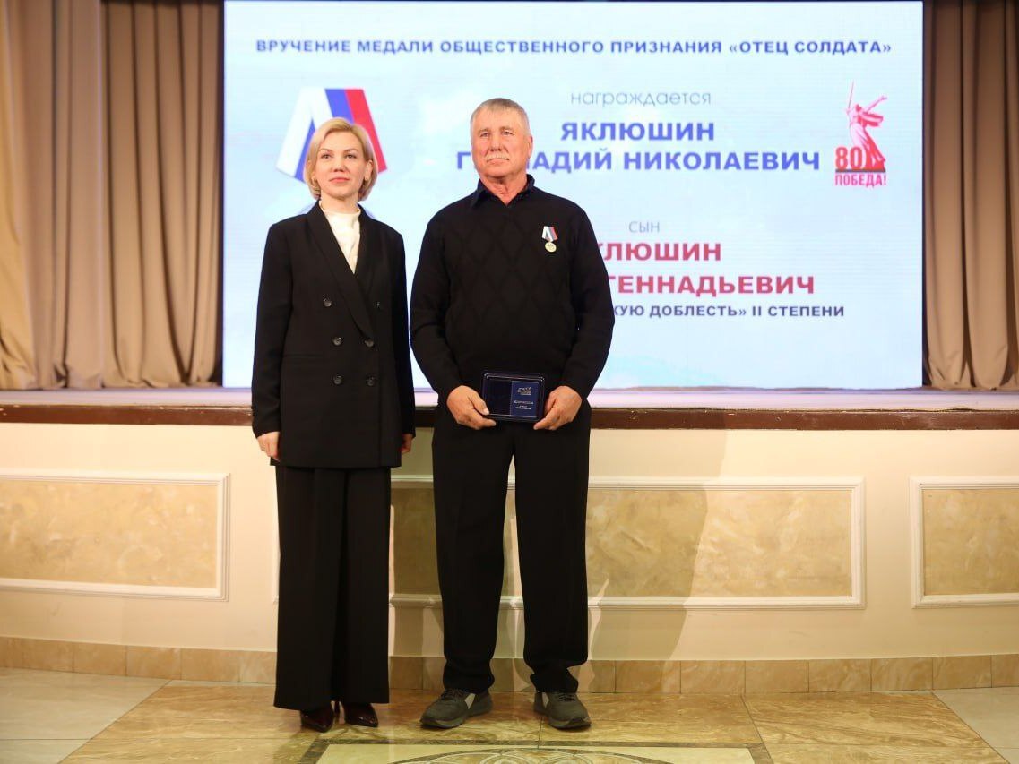 В преддверии Дня отца, который отмечается в России 19 октября, в г. Тюмени состоялась невероятно трогательная и важная церемония награждения медалями общественного признания "Отец солдата". Их вручили 23 жителям региона, отцам участников специальной военной операции, проявивших особые мужество, отвагу, самоотверженность и героизм при выполнении боевого задания. Среди награждённых – наши земляки Николай Гайс и Геннадий Яклюшин. Всего в Тюменской области медали вручены 174 отцам.