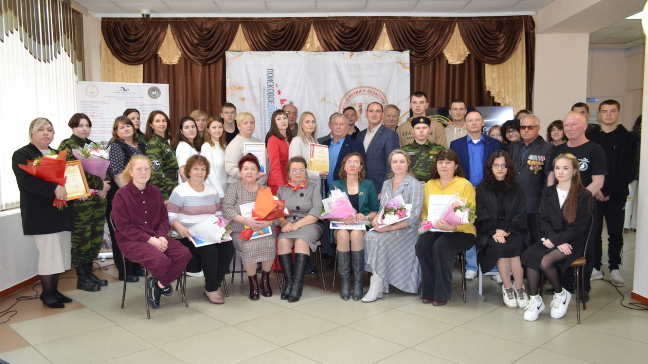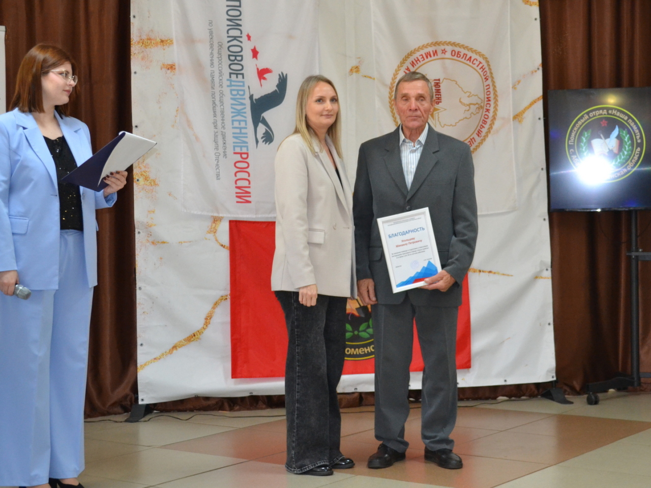 Благодарственное письмо за большой вклад в дело об увековечении памяти погибших при защите Отечества, гражданско–патриотическое воспитание молодёжи и знак "10 лет поисковому отряду "Наша память" вручены Оксане Головановой, Анатолию Бажину, Наталье Склюевой, Василию Медведеву.
