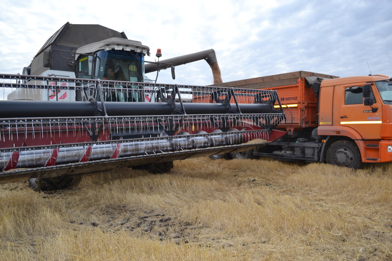 Раскачиваясь на неровностях, повреждённых обильными дождями, по полю медленно двигались уборочные комбайны. С полными бункерами они подъезжали к площадкам, высыпая в большегрузные машины тонны зерна. Работа на полях, что называется, кипела: комбайны наполняли свои бункера тяжёлым зерном, тридцатитонные Камазы увозили урожай на Абатский ХПП.