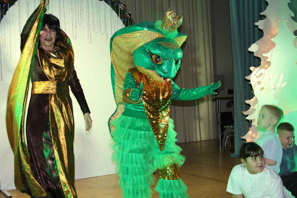 Могущественные существа: повелитель водного царства Водяной, царица подземного царства Змея, Фея воздушного царства, повелительница огненного царства Огневушка не только передали свои подарки, но и поделились с нашими героями своими волшебными знаниями и умениями. Вместе со сказочными помощниками они провели для ребят зажигательные игры "Чистим дно морское", "Змеиный клубок", "Взбей облака", игротанец "Зажигалка".