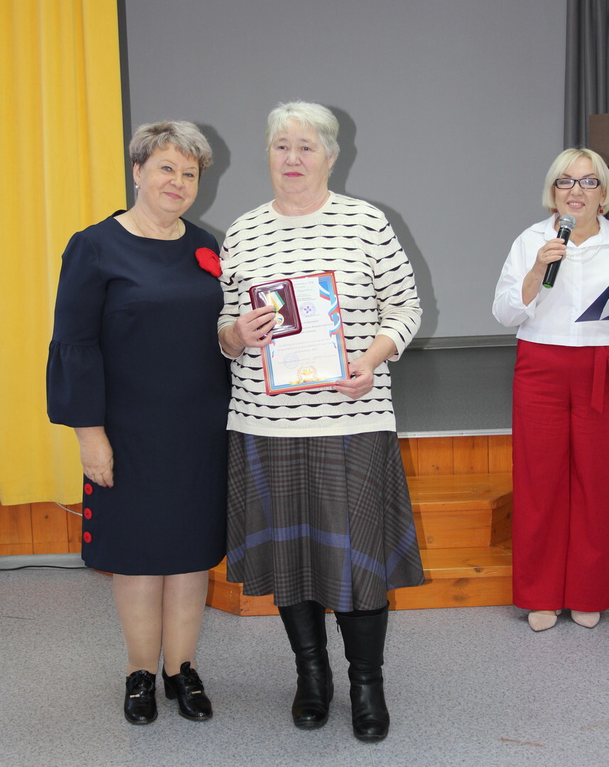 Ирина Артуровна сердечно поздравила собравшихся членов общества с праздником, пожелав им здоровья и успехов во всех сферах жизни. Она вручила юбилейные медали в связи со 100-летием образования Всероссийского общества слепых и почётные грамоты за активное участие и личный вклад в общественную жизнь Абатской МО ВОС Евгении Гуляевой и Зое Пяслане. Такие же награды Ирине Макаровой торжественно передала ведущая праздника Елена Сырьева.