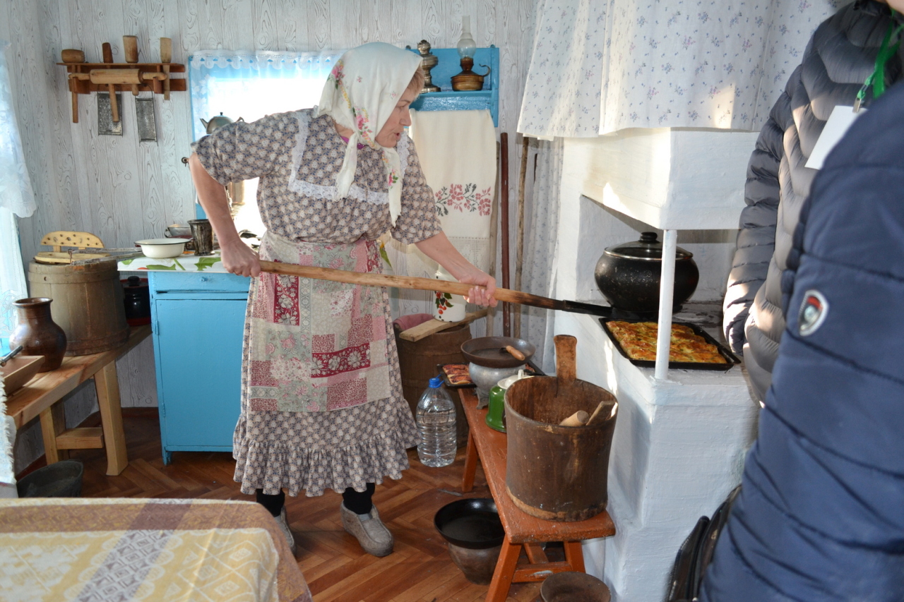 Елена Григорьевна, как истинная хозяйка пригласила гостей на экскурсию в дом. Домотканые половики, эксклюзивные (из ивовых прутьев) стулья, детская качалка (зыбка), белоснежная русская печь с кухонной утварью – всё это отражает старинный быт людей, их вековой опыт и природную мудрость.