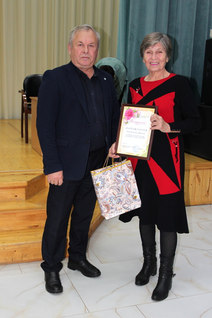 Продолжая церемонию награждения, заслуги ветеранов района отметил председатель общественной организации Анатолий Бажин. Галине Лешкевич он вручил благодарность Абатского районного совета ветеранов за волонтёрскую деятельность. Диплом участника областного конкурса "Ветеранское подворье" получила Любовь Петрусевич. Дипломами участников областного конкурса "Едим своё" были награждены Галина Акишева и Валентина Шайбель.