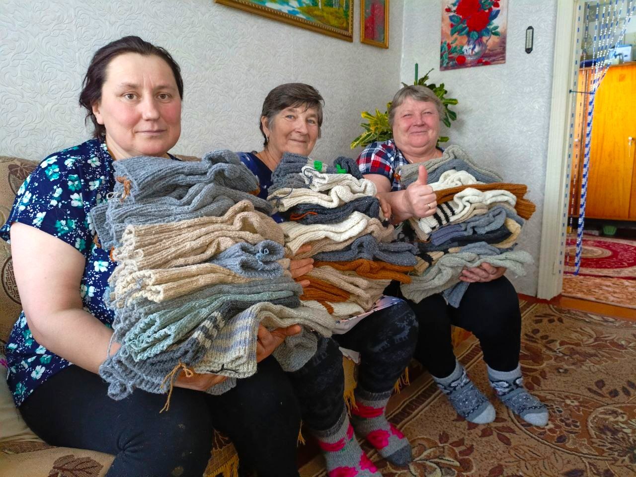С особой теплотой женщины из деревни Пайковой вяжут носки для военнослужащих. За очень короткое время они доставили в штаб #Мывместе, расположенный в молодёжном центре с. Абатское, 60 пар вязаных носков. На снимке рукодельницы Людмила Замкова, Ирина Шатрова и Елена Шароха.