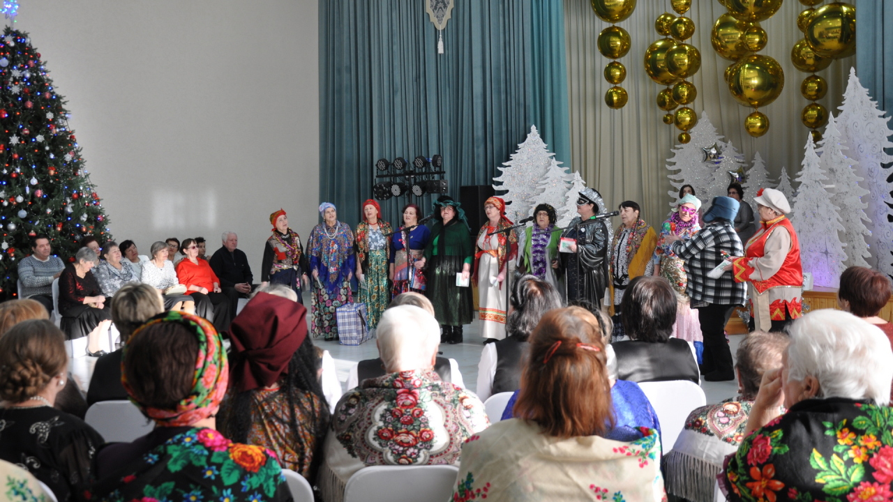 С большим желанием гости встретили шумными аплодисментами весёлых участниц из группы "Абатчанка", с удивлением разглядывая под масками и гримом знакомые лица. Как и в старину, они гадали и давали шуточные прогнозы. От группы "Купава" звучали колядки с пожеланиями добра и благополучия.
