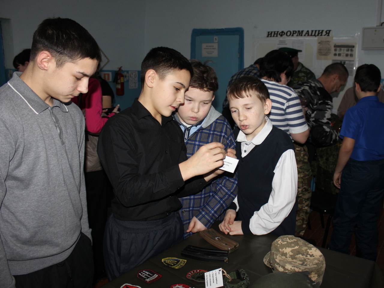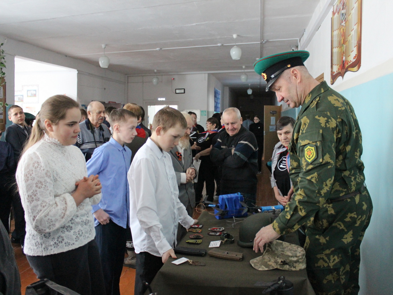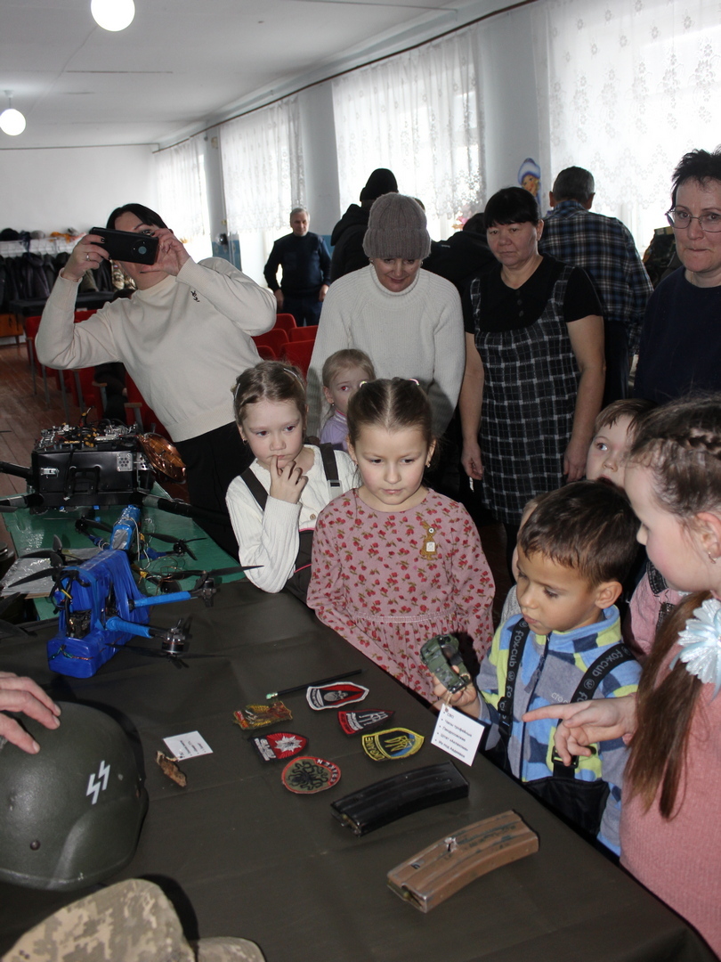 Живой интерес у школьников и учителей вызвала выставка артефактов времён Великой Отечественной войны и специальной военной операции. Школьники с интересом рассматривали экспонаты, примеряли обмундирование бойцов, фотографировались.