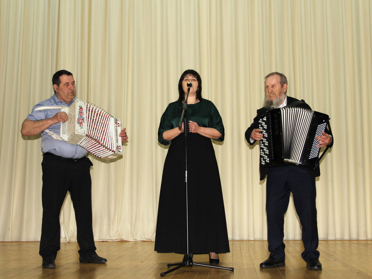 Тепло и душевно звучала песня "Поговори со мною, мама" в исполнении Натальи Гетман. Стихотворение собственного сочинения Ирины Харитоновой "За окошком свету мало" плавно перетекло в песню трио "Русский стиль". "Домик окнами в сад" - любимую песню Полины Гончар, солистки и руководителя вокальной группы "Зоренька", виртуозно исполнила её дочь Елена под аккомпанемент брата Сергея и гармониста Василия Федорова. Душевно прозвучало авторское стихотворение Елены, посвящённое своей семье. Вокальная группа "Ровесники" поддержала её дебютное выступление исполнением песни "Мамонька". Завершился вечер - панорама талантливым исполнением ведущих "Песни мамы моей" из репертуара Леры Огонёк.