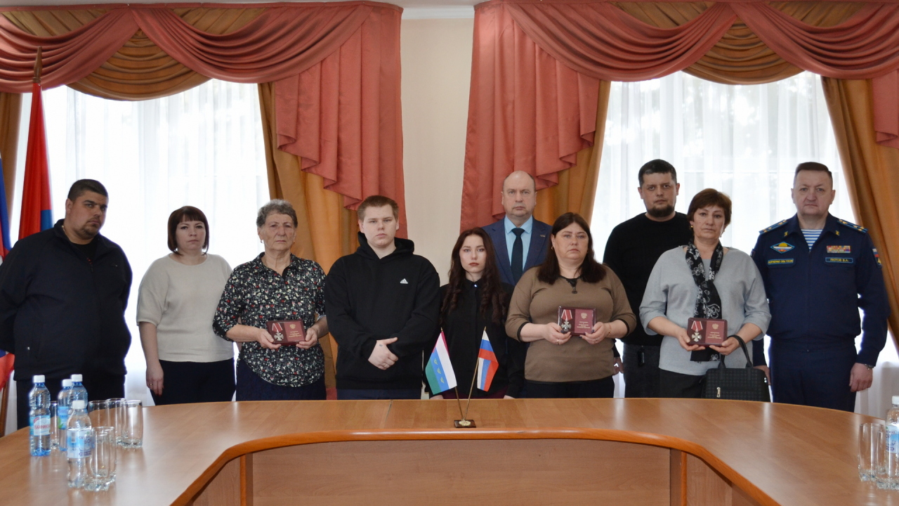 Заслуженные награды родственникам погибших вручил военный комиссар Владимир Лютов, выразив им слова глубокого соболезнования. Орден Мужества и удостоверение к награде он передал Валентине Николаевне – матери погибшего сына Никиты Беспальцева. Орден Мужества и удостоверение к награде переданы Анне Ивановне – супруге погибшего мужа Сергея Качулина. Орден Мужества и удостоверение к награде переданы Евгении Ильиничне – матери погибшего сына Алексея Овчаренко. Орден Мужества и удостоверение к награде переданы Анатолию Викторовичу - брату погибшего Виталия Поздеева.