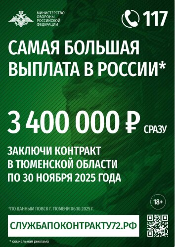 ДалееЖители Тюменской области, которые заключили контракт с Минобороны РФ после 1 декабря 2024 года, могут списать долги на сумму до 10 млн рублей, сообщает информационный центр правительства региона. На …